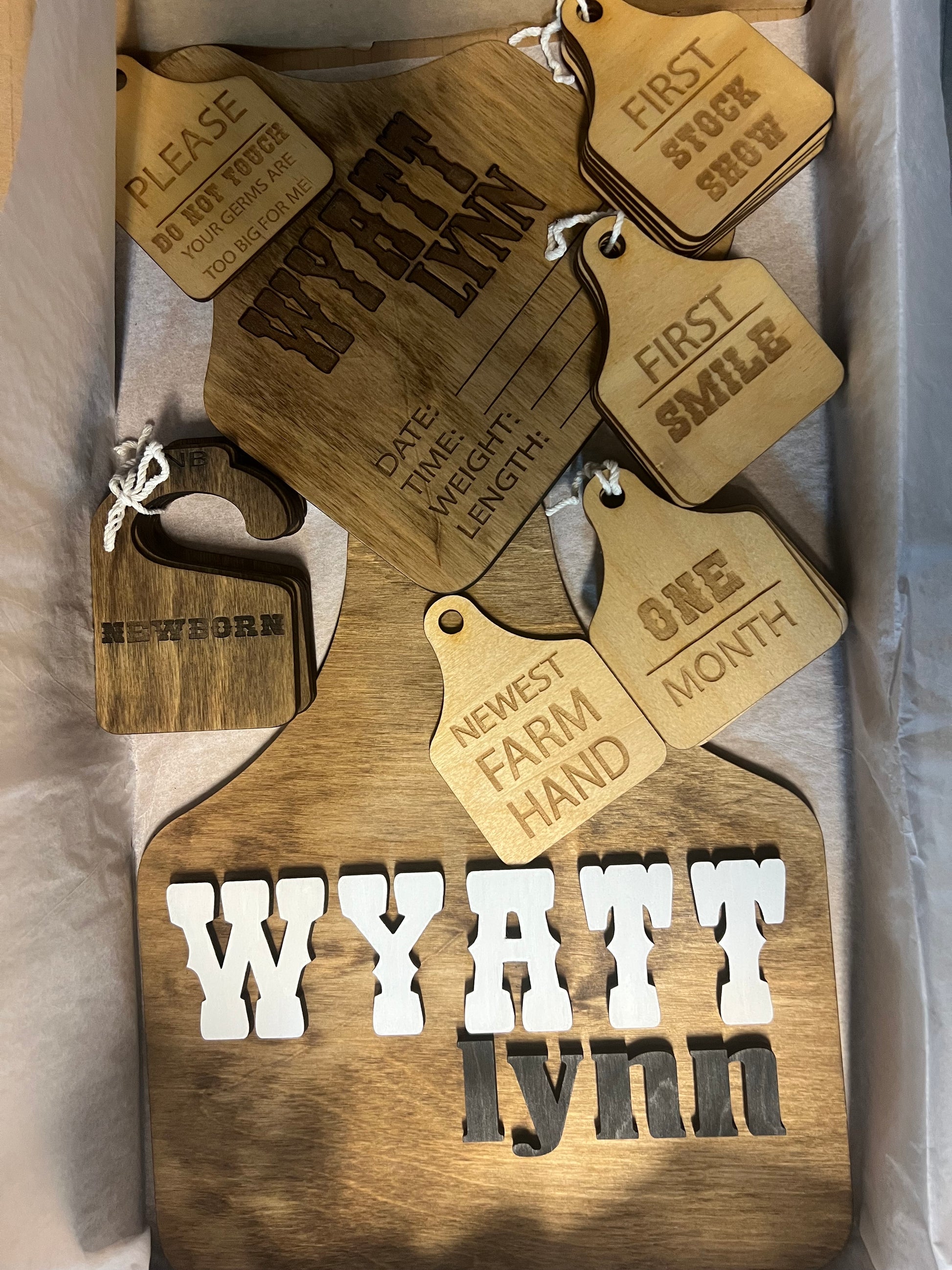 Welcome the newborn in your life with personalized milestone markers. Keep them simple with the basic milestone or add embellishments for an extra special gift.