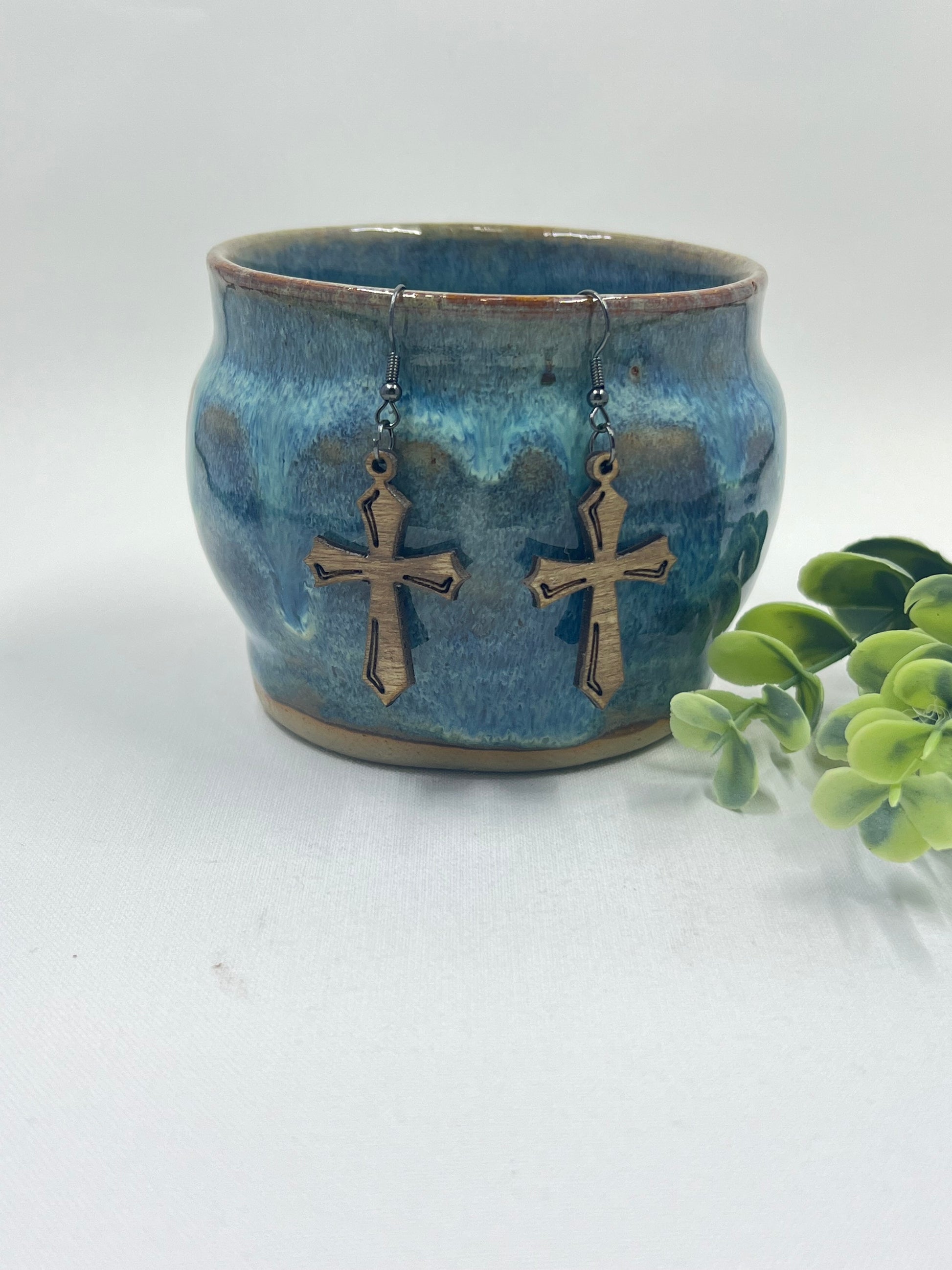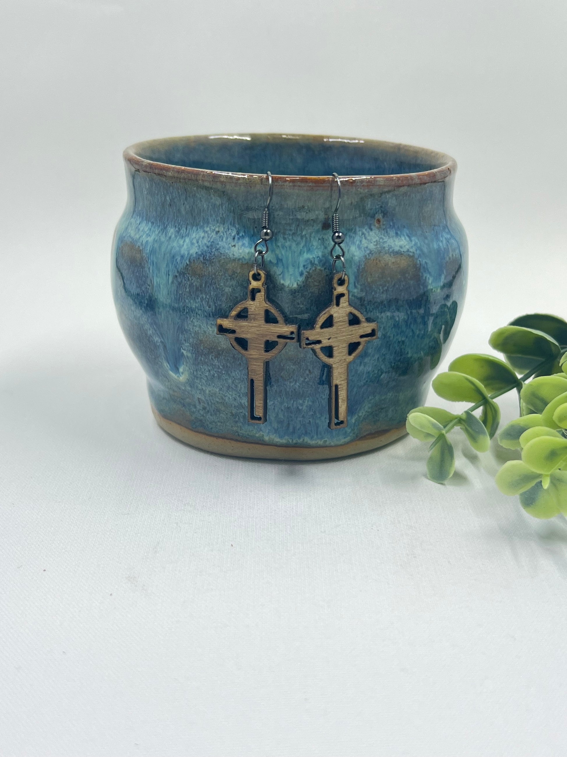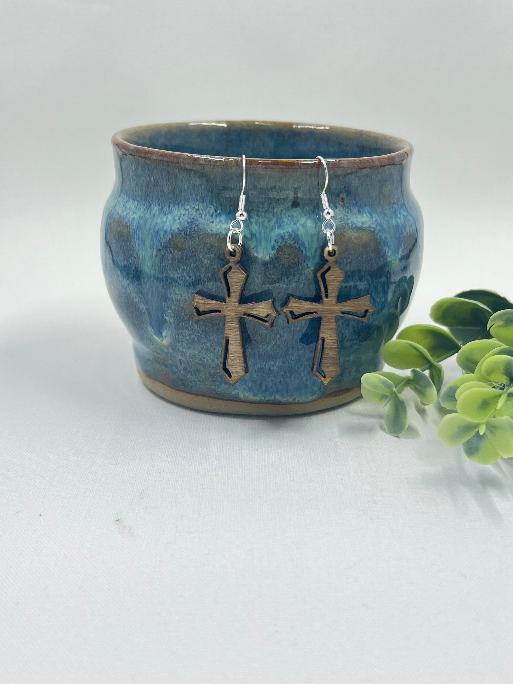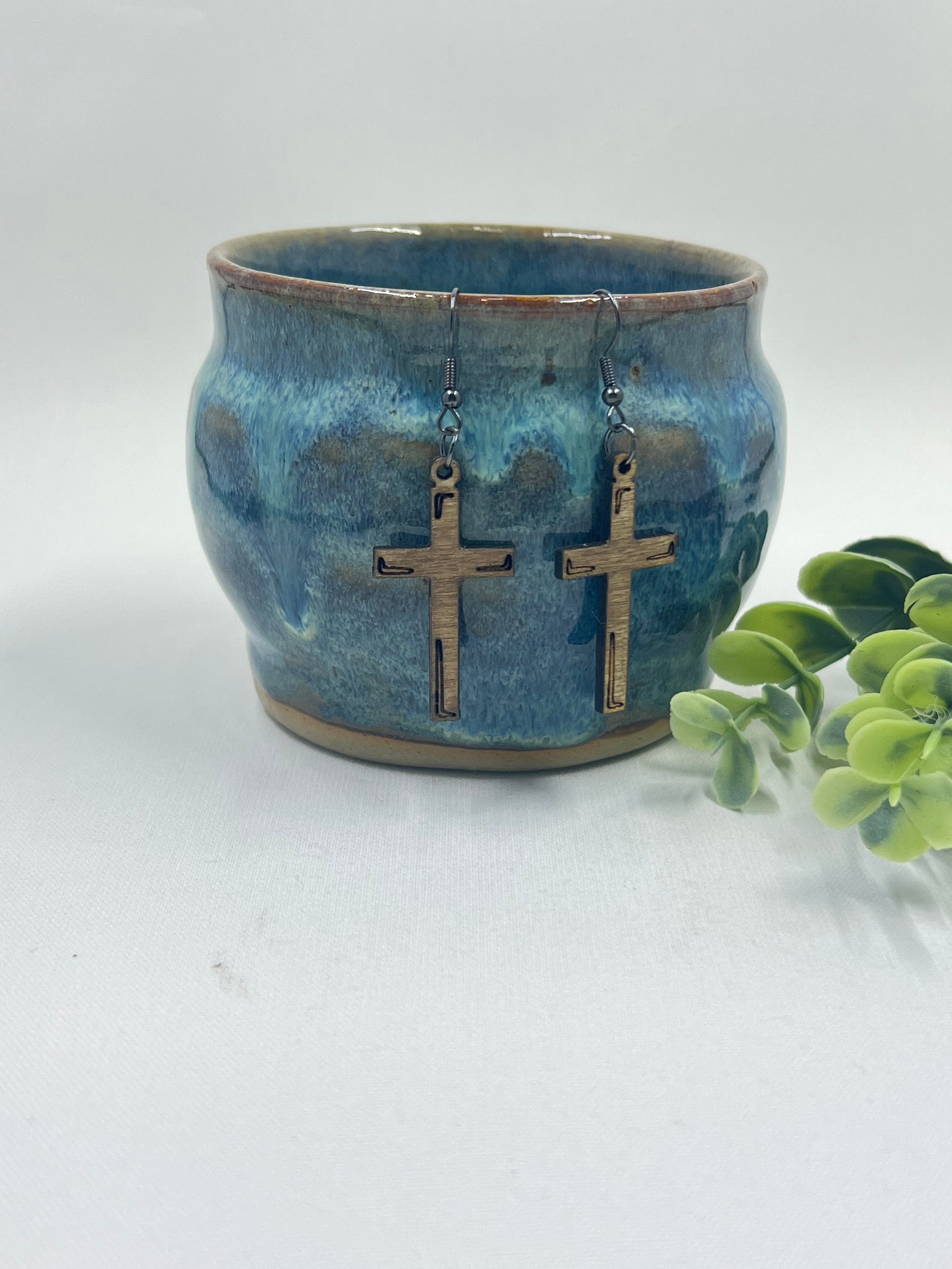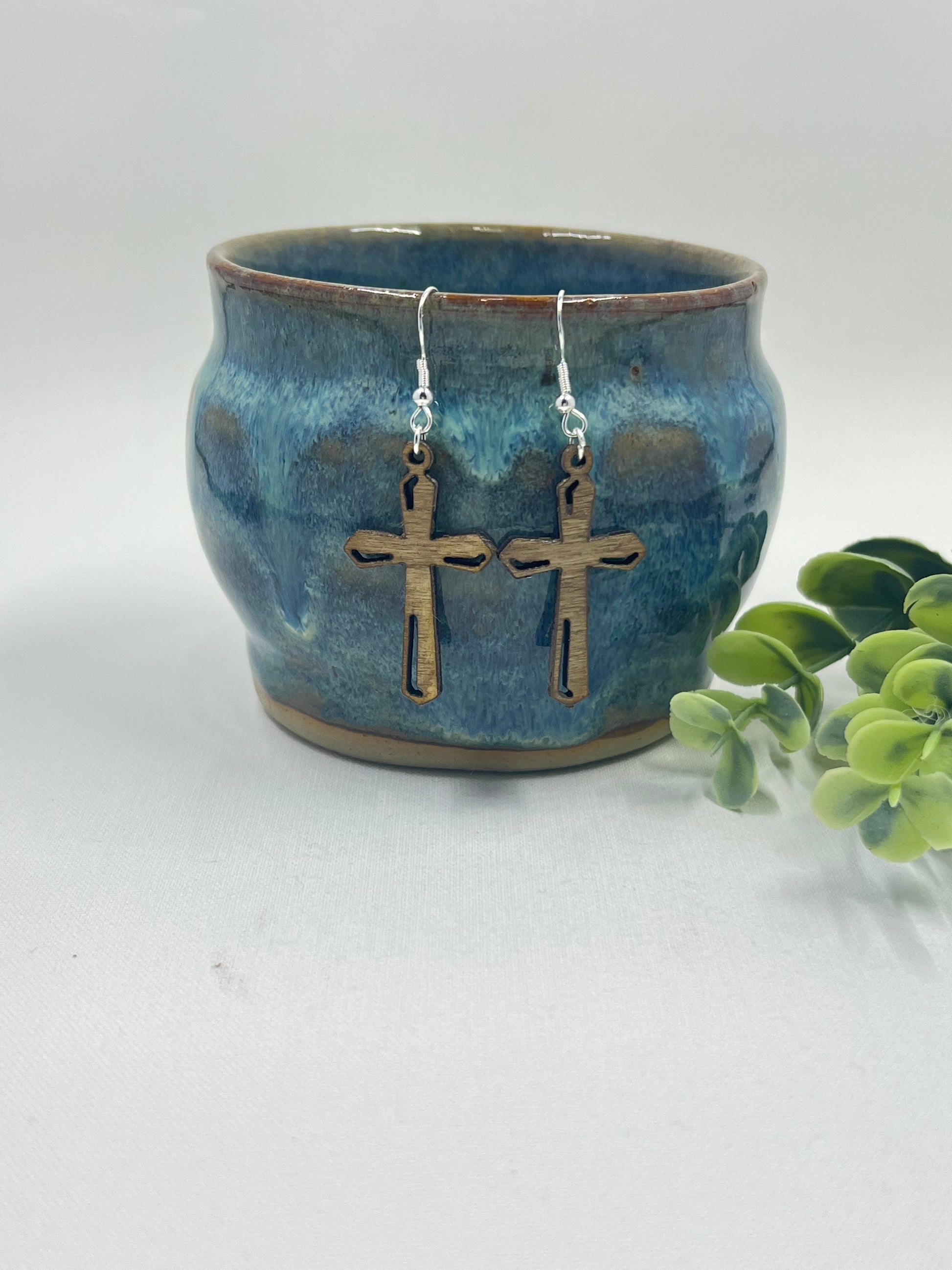 Design Wooden Cross Earring