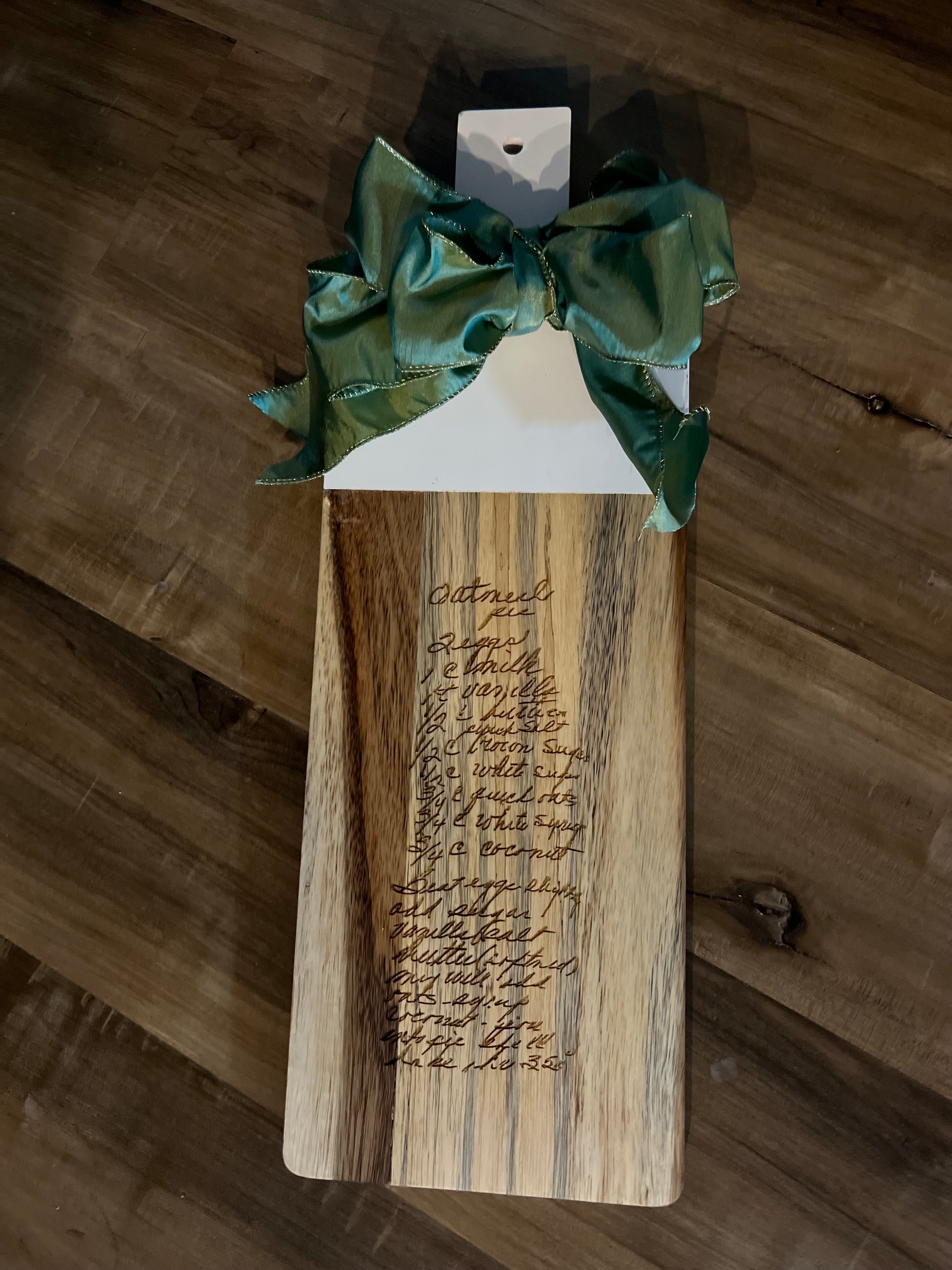 Take those special recipes/other handwritten sentiments and keep them forever in a keepsake. Prices start at but depending on needs of digitizing and customizing your product, the cost may vary.