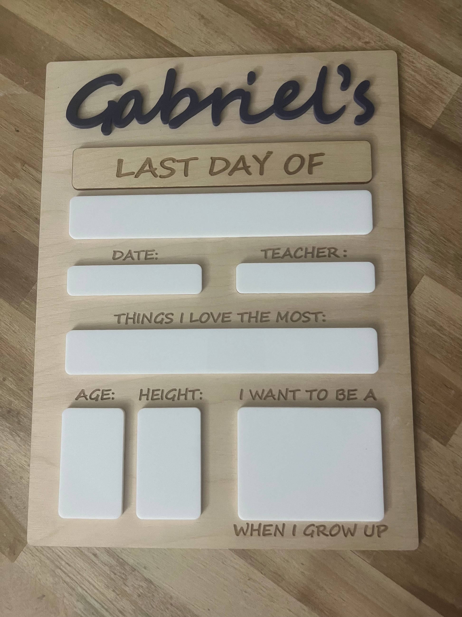 Capture the memories of your child's school journey with our keepsake school board! Featuring a first day/last day picture board with your custom name, this unique and personalized piece is the perfect way to showcase your little one's growth, dreams, and achievements. Cherish these precious moments for years to come with our keepsake school board.