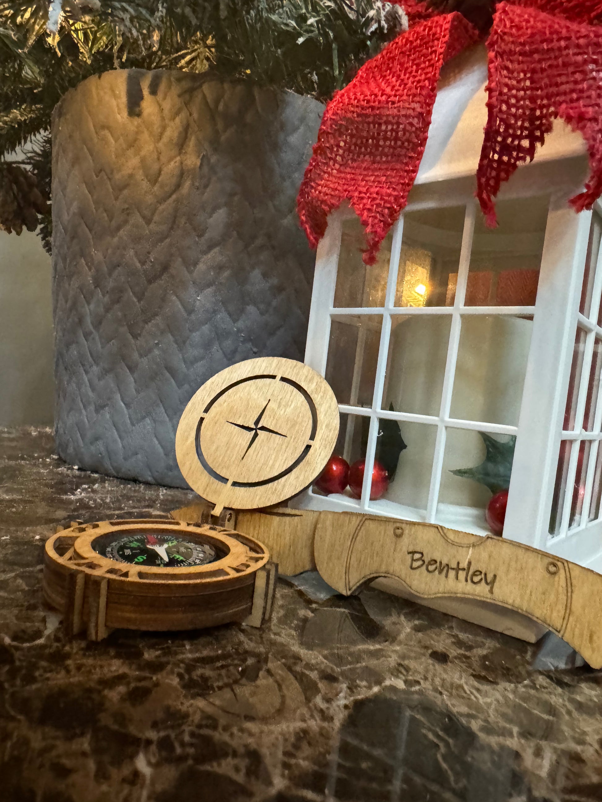 -layered baltic birch compass holder encompassing a Skywalker pocket compass
